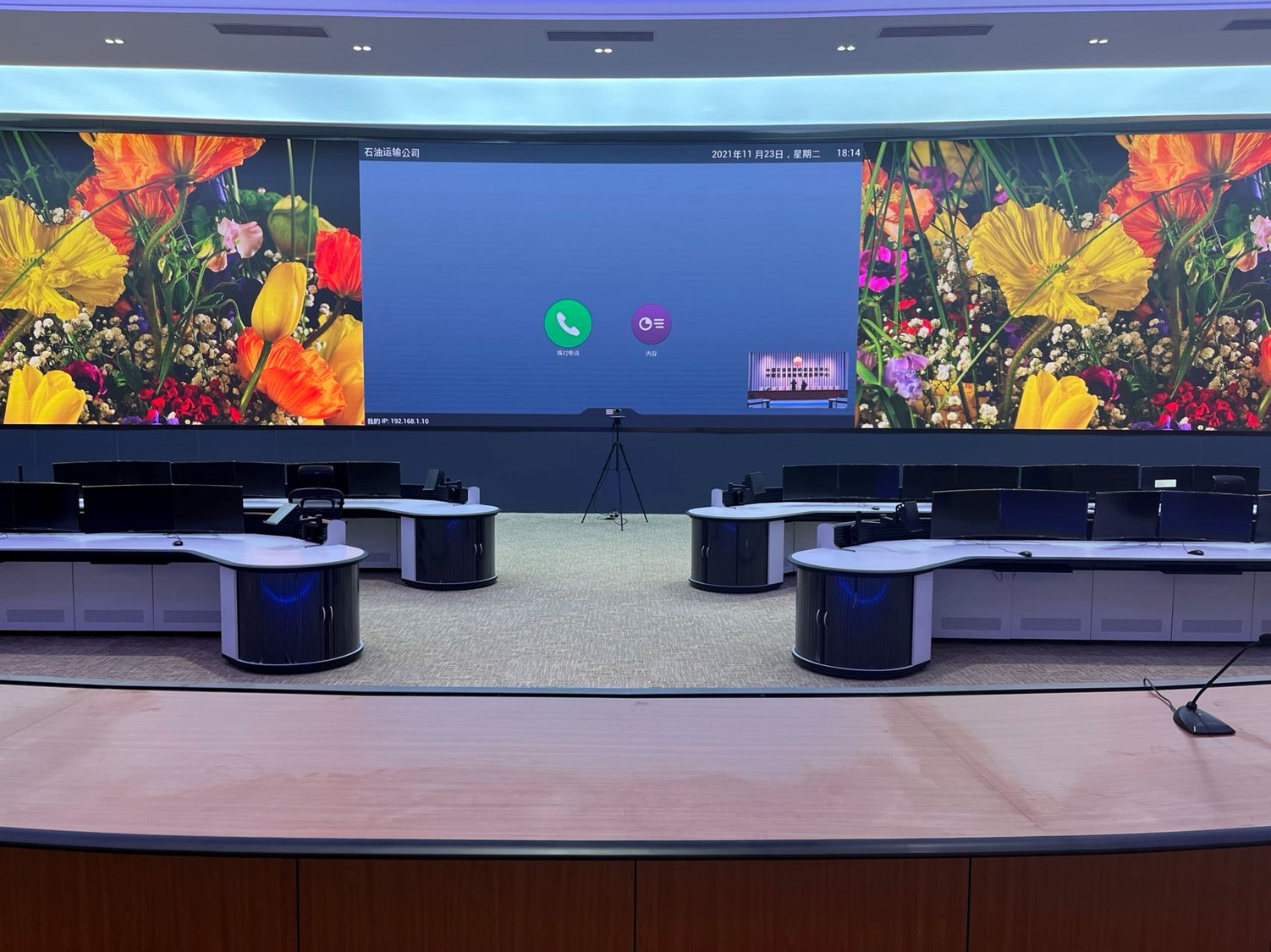 中國石油運輸公司調(diào)度中心項目位于北京順義和新疆烏魯木齊兩地,兩地調(diào)度中心各建1套1.56mm的LED監(jiān)控大屏,并重點對兩地視頻會議功能進行升級,由原來模擬視頻會議終端升級為高清終端,實現(xiàn)雙路高清攝像機信號的實時切換及雙流顯示。保證兩地調(diào)度中心會場互聯(lián)互通,實現(xiàn)視頻交流,通過集團M